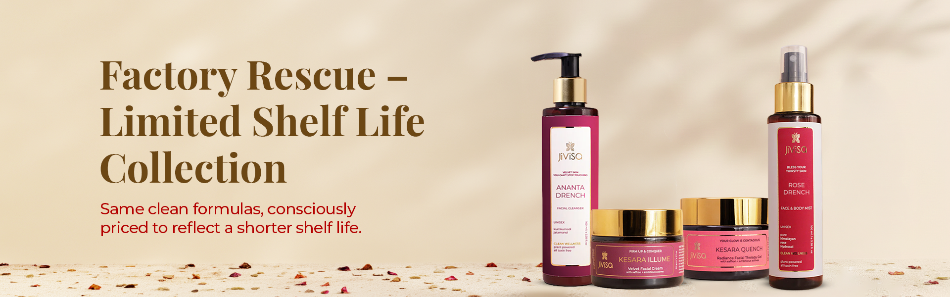 Clean, hydrating formulas, thoughtfully priced for mindful routines. This collection features select JiViSa products with a shorter shelf life, best before 07/26, perfect for trials, everyday use, and easy restocking. A smarter way to shop, a kinder way to consume.