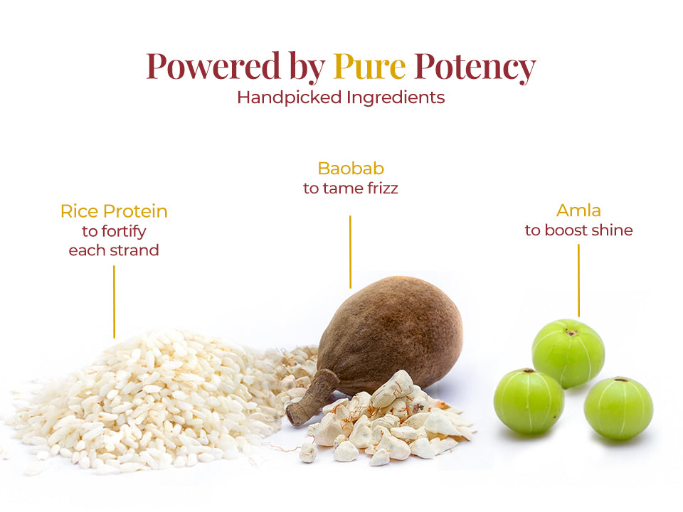 Aqua, Brassicyl Isoleucinate Esylate (and) Brassica Alcohol, Polyquaternium-7, Cetyl Alcohol, Guar Hydroxypropyltrimonium Chloride, Cocos Nucifera (Coconut) Oil, Propanediol, Adansonia Digitata (Baobab) Seed Oil, Sodium Benzoate, Sesamum Indicum (Sesame) Seed Oil, Coconut Alkanes (and) Coco-Caprylate/Caprate, Prunus Amygdalus Dulcis (Sweet Almond) Oil, Eclipta Alba (Bhringraj) Oil, Hydrolyzed Rice Protein, Olea Europaea (Olive) Fruit Oil, Phyllanthus Emblica (Amla) Fruit Oil, Rubia Cordifolia (Manjistha) Root Oil, Sodium Gluconate, IFRA Certified Allergen Free Parfum