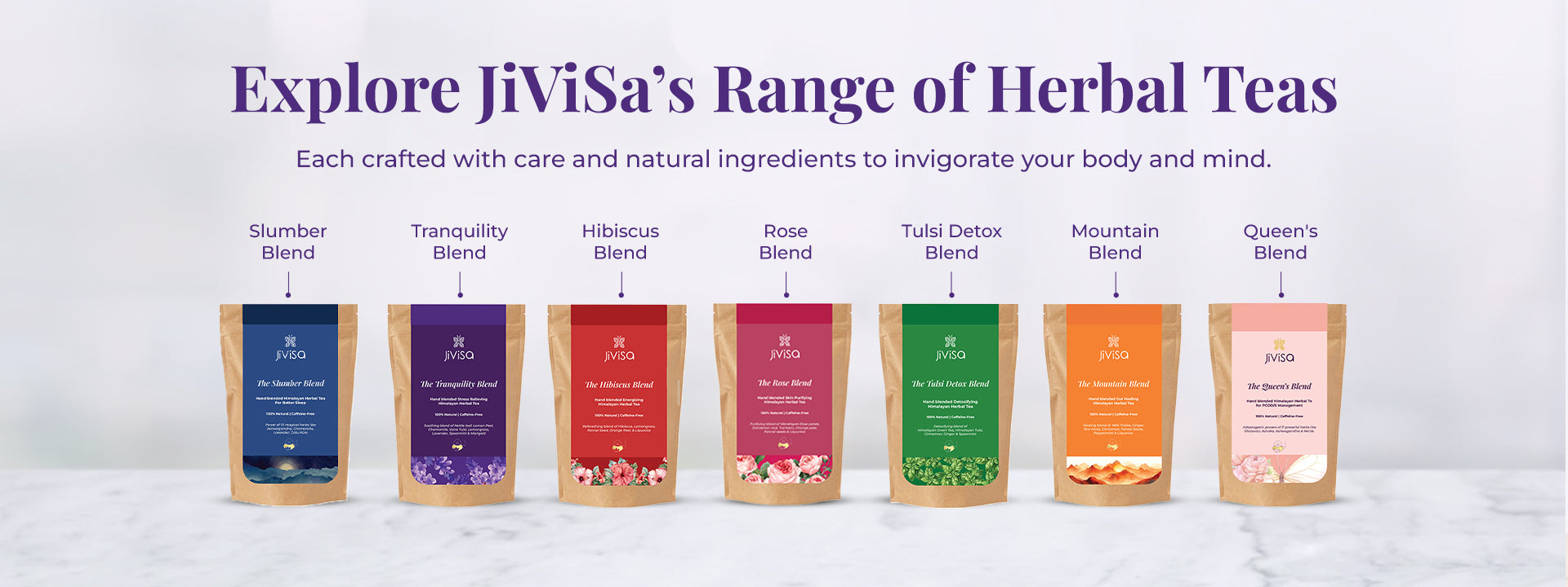 JiViSa Tranquility caffeine-free tisane is crafted to help ease emotional tension, calm the nervous system, and support daily mental balance—without causing drowsiness.